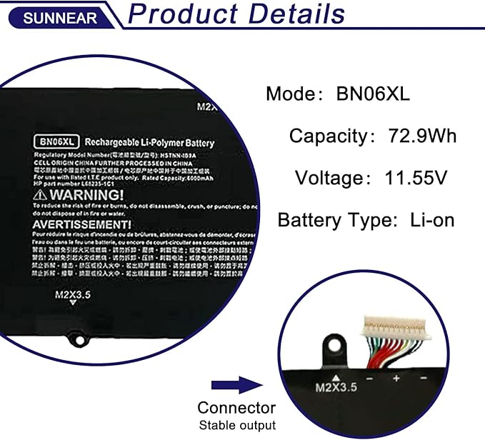 BN06XL Laptop Battery Replacement for HP Spectre X360 15-EB0005UR 15-EB0025TX 15-EB0035TX 15-EB0053TX 15-EB0083NR Series Notebook BN06072XL L68235-1C1 HSTNN-IB9A 68299-0055 11.55V 72.9Wh